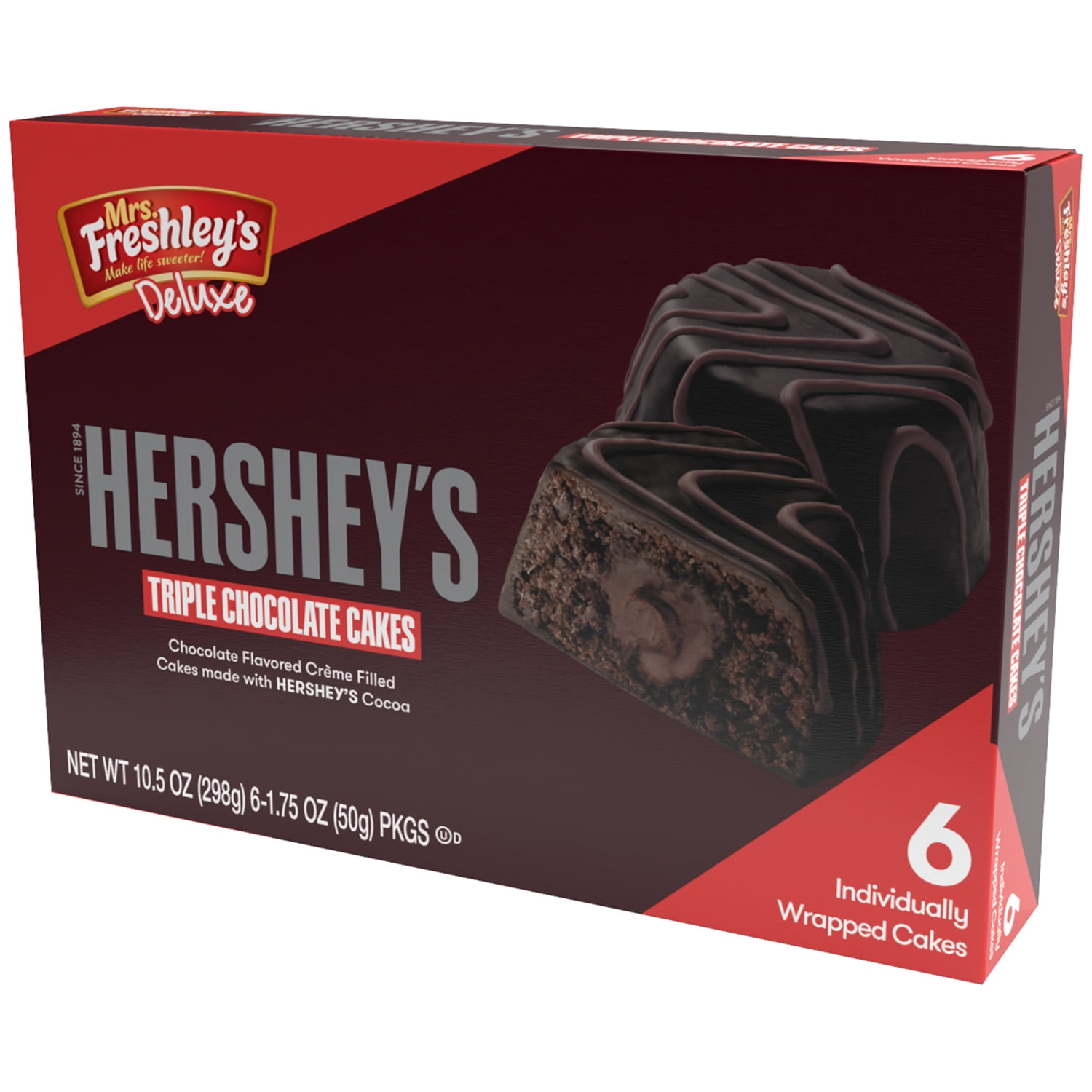 Theyre portable delicious treats that can be topped with either yummy frosting or perhaps drenched in. Freshleys Deluxe Hersheys Triple Chocolate Cakes are indulgent moist chocolate cakes. Heat oven to 350F.